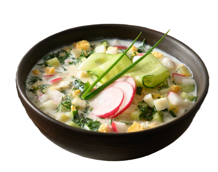 Охлажденный суп, распространенный в России и странах СНГ. Готовится из свежих овощей (картофель, морковь, огурцы, яйца), смешанных с квасом или кефиром.